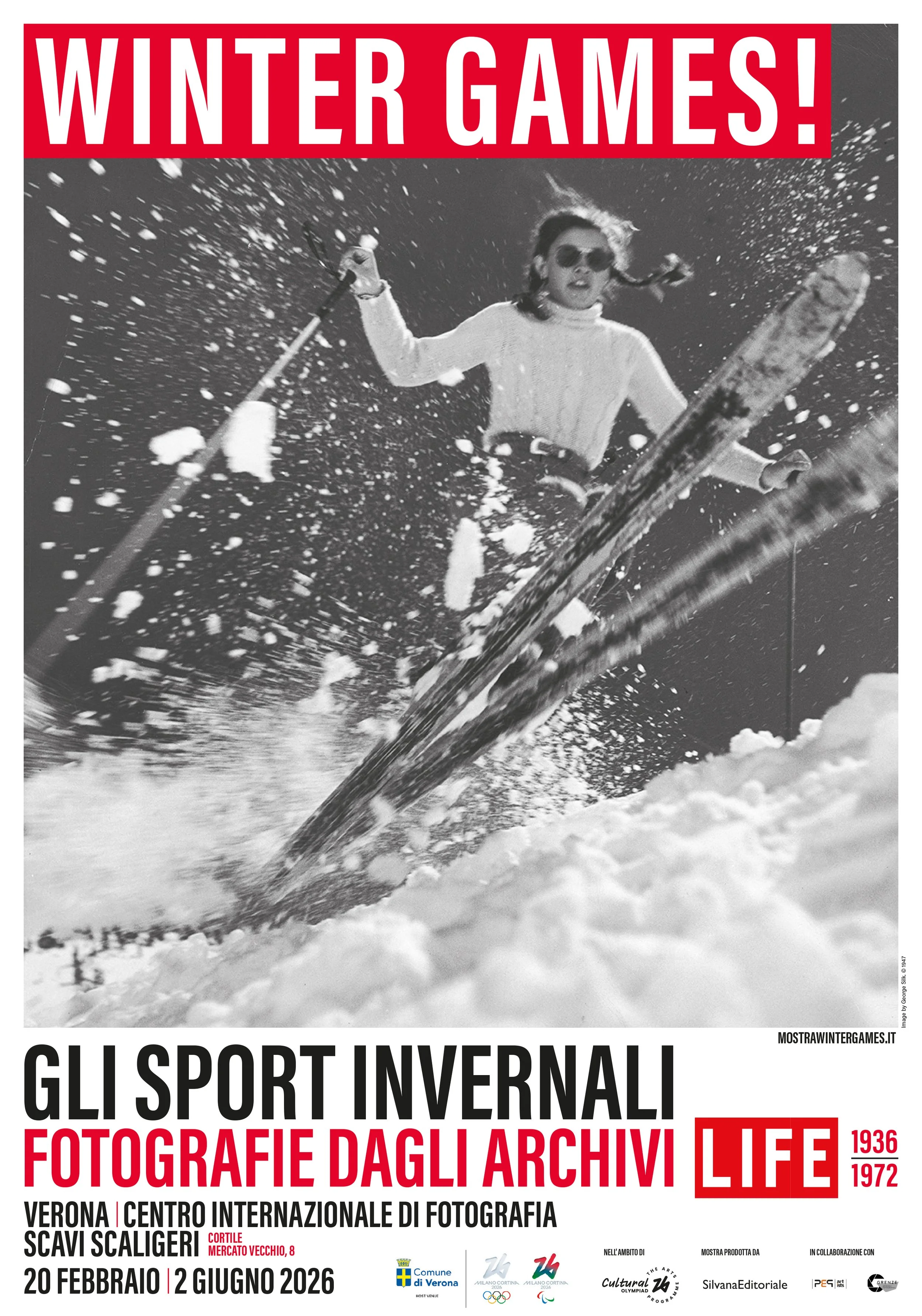 Dopo un decennio di chiusura, il Centro Internazionale di Fotografia - Scavi Scaligeri riapre al pubblico e torna a essere uno spazio vivo di produzione culturale e confronto. Dal 20 febbraio, i suggestivi ambienti sotterranei nel cuore di Verona accolgono la mostra “Winter games! Gli sport invernali. Fotografie dagli archivi LIFE 1936-1972” che intreccia fotografia, sport, storia e immaginario collettivo, inserendosi nel palinsesto di iniziative che accompagnano la città nel percorso verso i Giochi Olimpici e Paralimpici Invernali di Milano Cortina 2026, di cui Verona è protagonista.